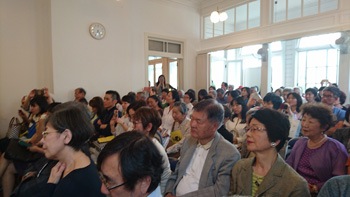 みゆきさんに花束を渡す列は、サロンのうしろ端まで続き。